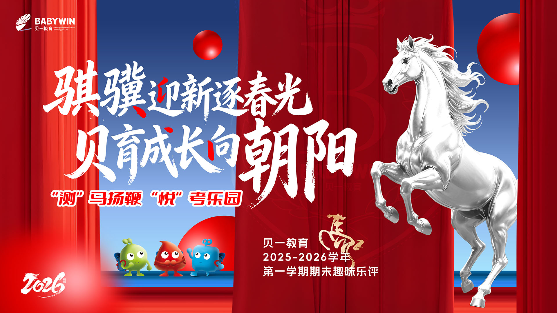 新年伊始,萬象更新。貝一教育2025-2026學年第一學期期末測評,以“騏驥迎新逐春光?貝育成長向朝陽”為主題,將傳統(tǒng)的期末測評轉(zhuǎn)化為一場融合年味與趣味的闖關(guān)嘉...